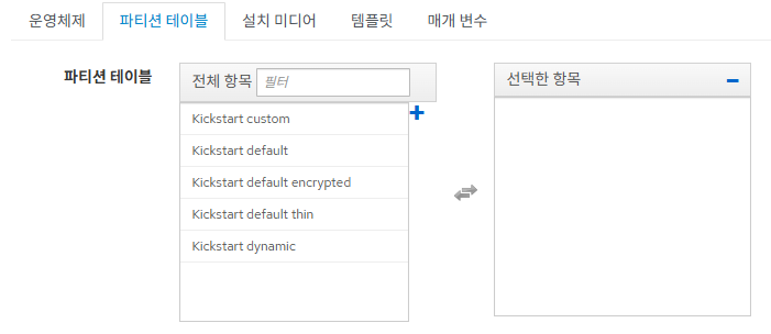 파티션 테이블 탭에 선택한 항목이 있다면 모두 '-' 버튼을 눌러 제거한다.